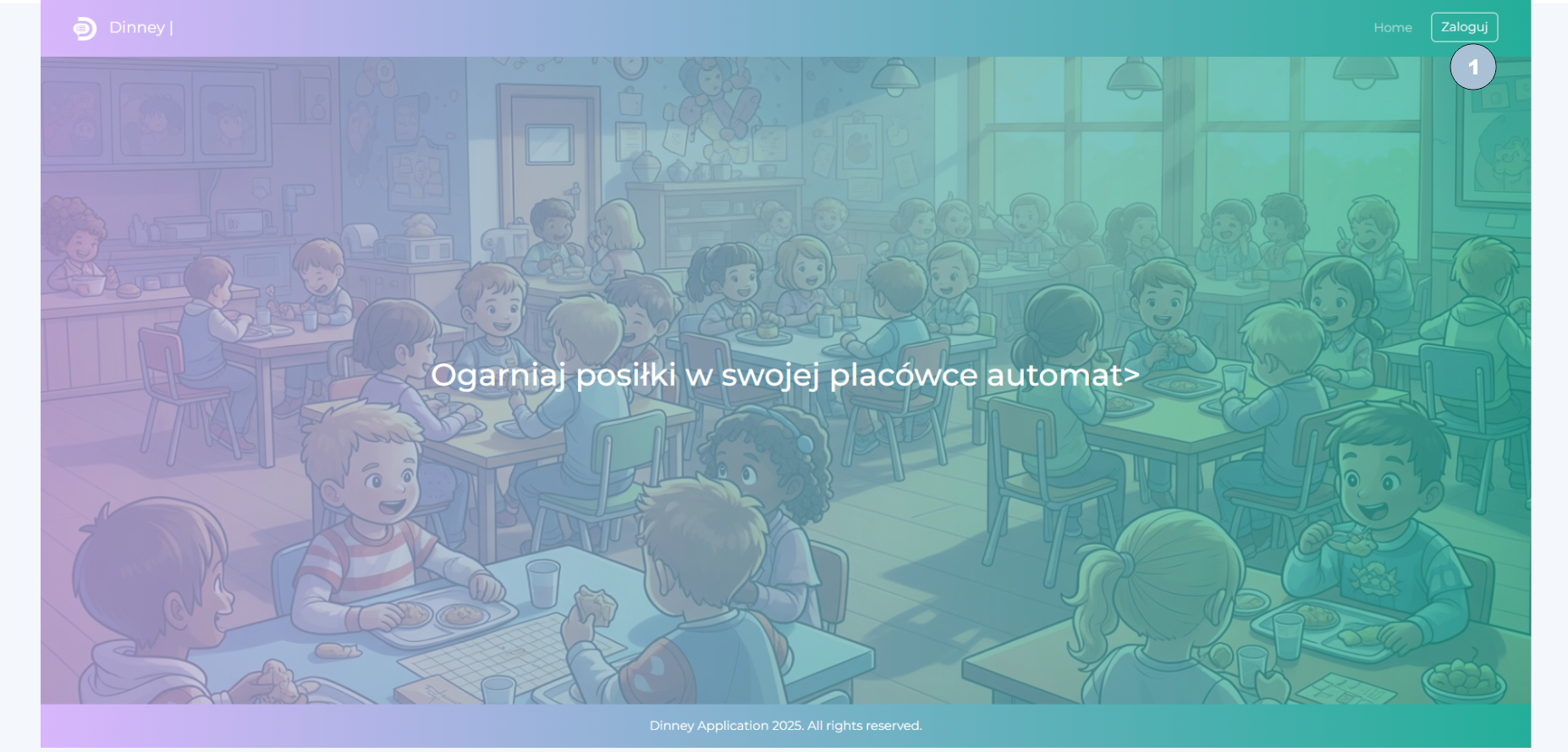 Po wejściu na powyższą stronę, należy kliknąć przycisk „Zaloguj” w prawym górnym rogu (1), następnie podać odpowiednio adres email, hasło i jeśli to pierwsze logowanie – zaakceptować politykę prywatności i zasady użytkowania aplikacji.