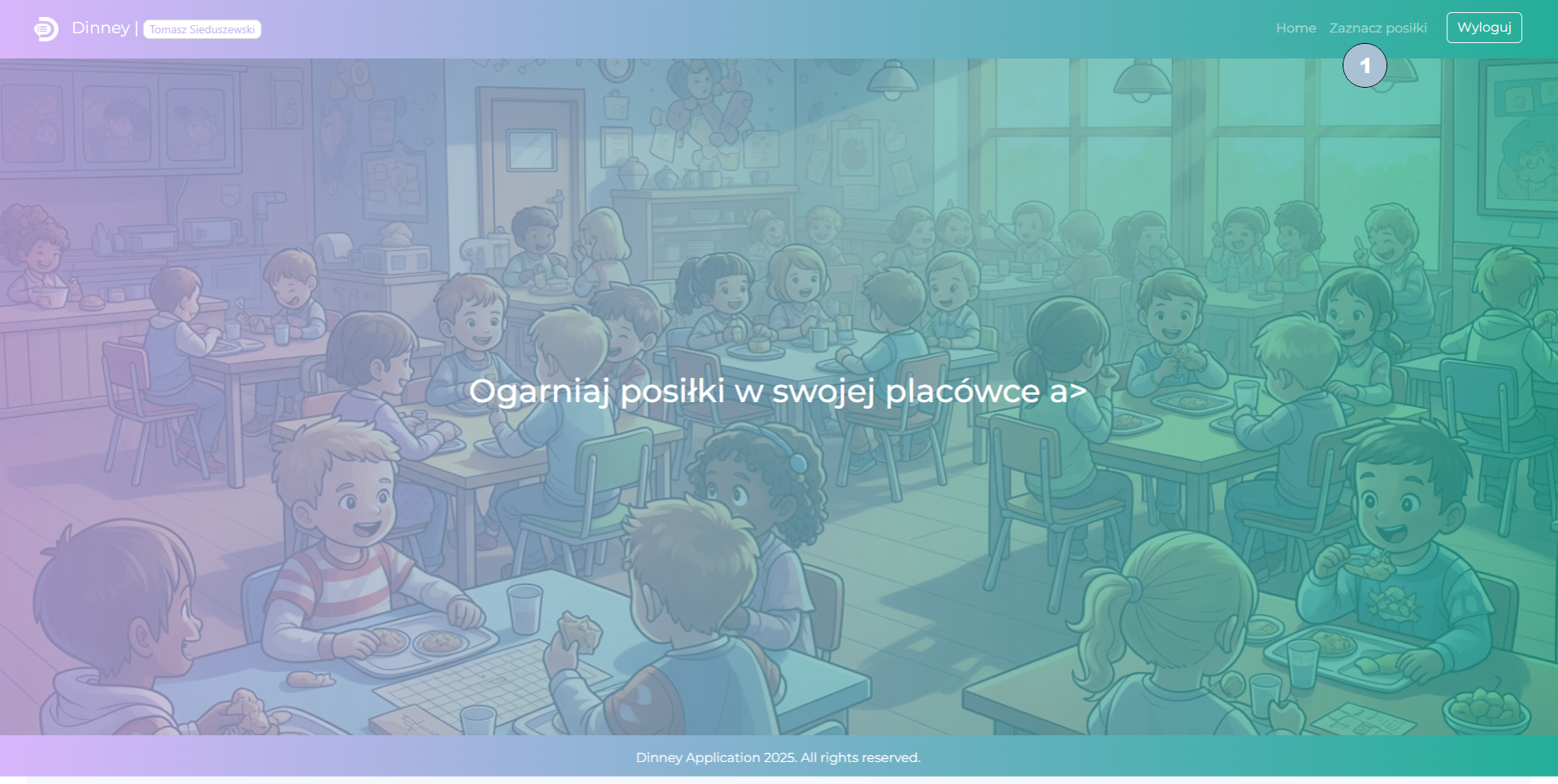 Po kliknięciu w przycisk (4) posiłek może być oznaczony jako zgłoszony (wówczas ma kolor zielony) lub niezgłoszony (odpowiednio, kolor szary).